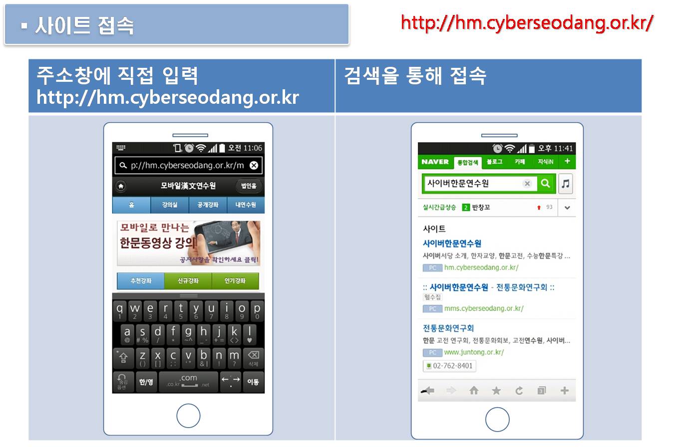1. 모바일한문연수원 사이트 접속