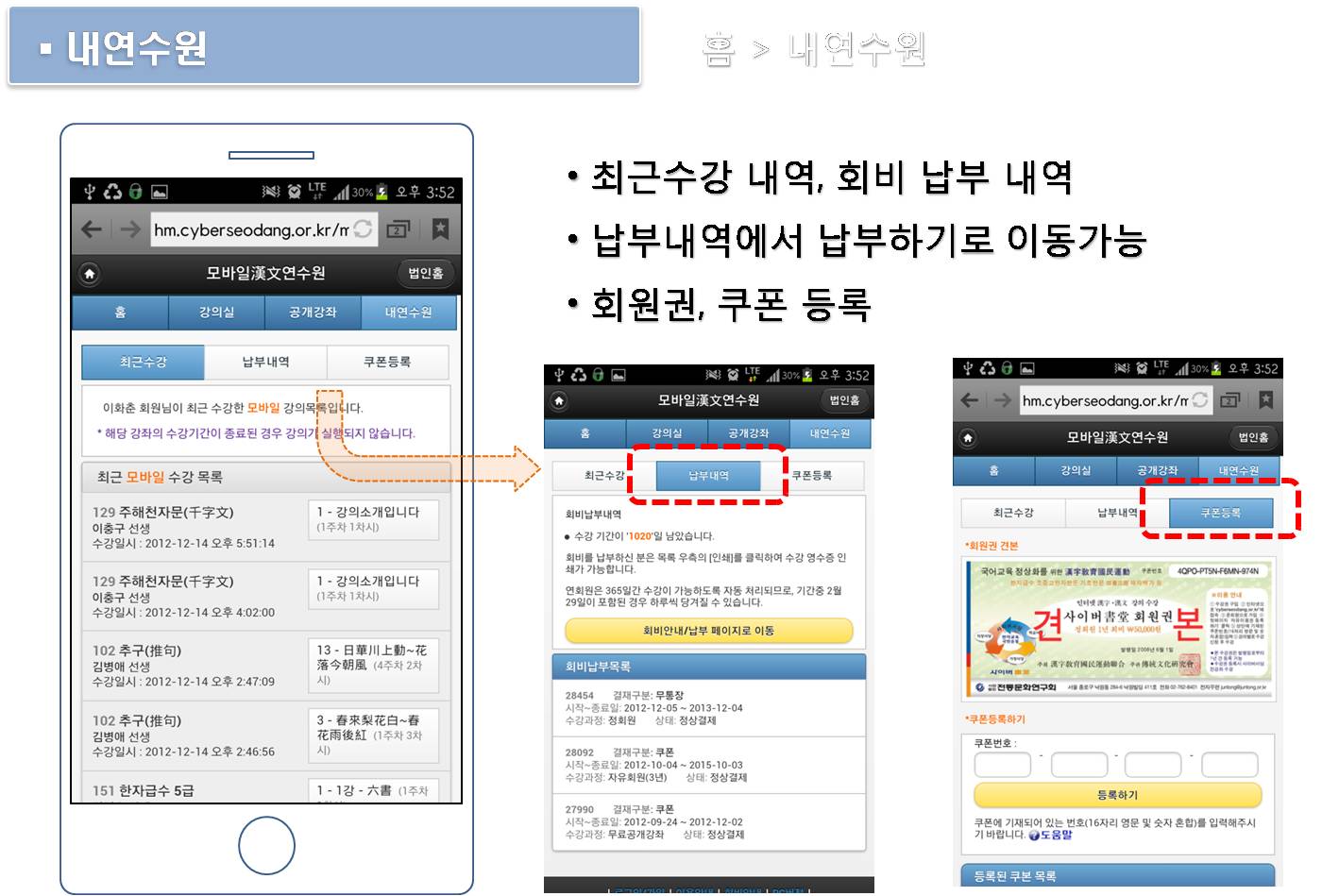 가. 수강내역, 회비납부 내역 조회