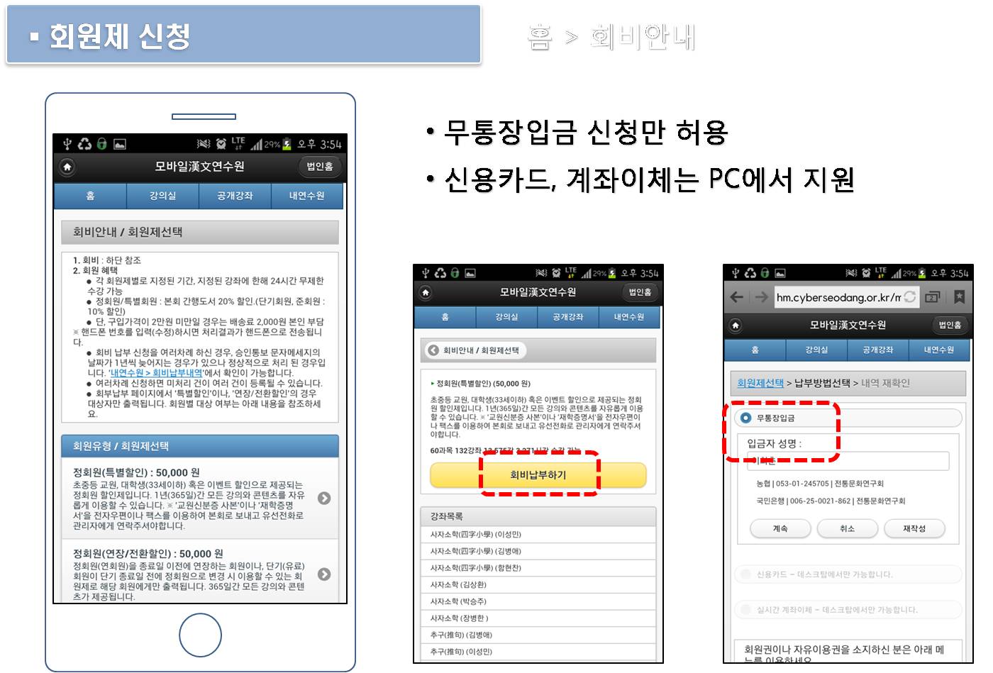 나. 무통장입금 신청만 가능