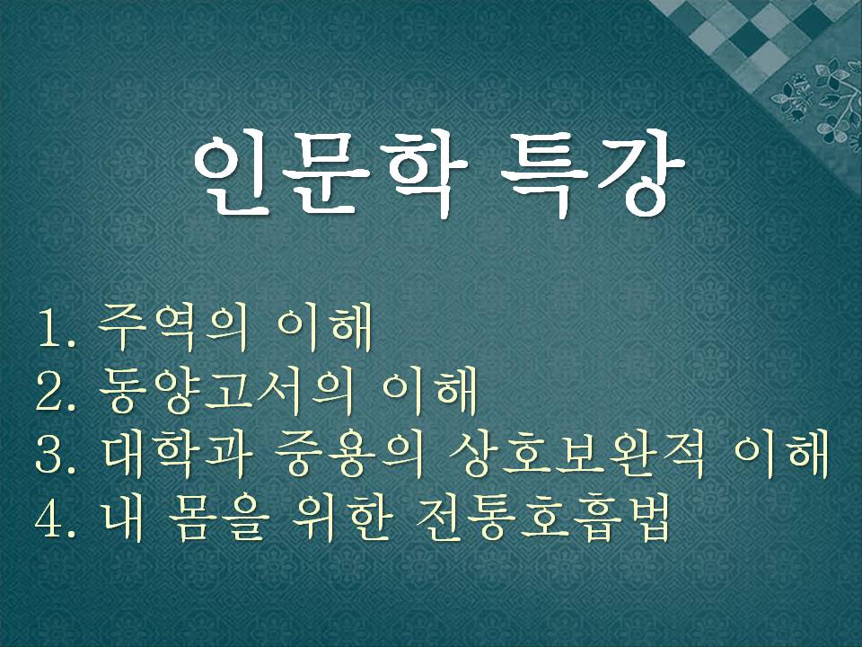 4가지 주제를 가지고 동양철학특강 강좌를 준비하였습니다.